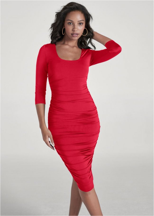 - Venus Ruched Printed Maxi Dress - Blue Multi