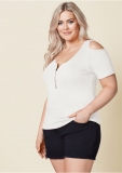 - Venus Plus Size Cold-Shoulder V-Neck Top in White