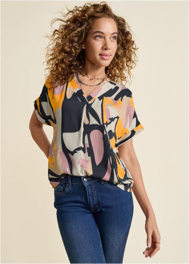 - Venus Plus Size Abstract Mirage Printed Top