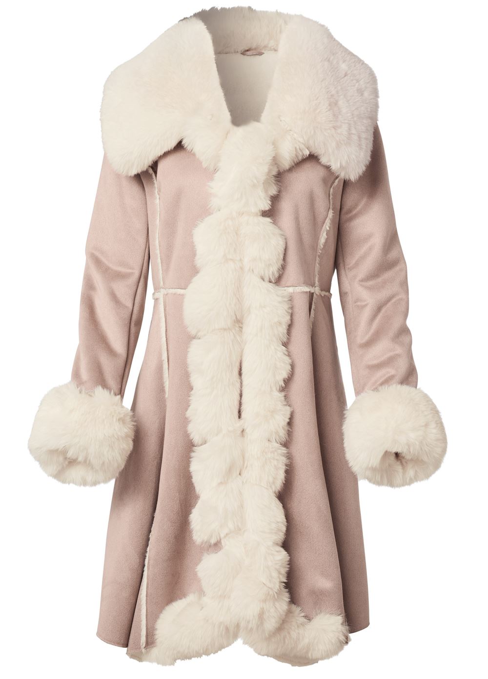 • Venus Faux-Suede-And-Fur Coat in Taupe & Off White