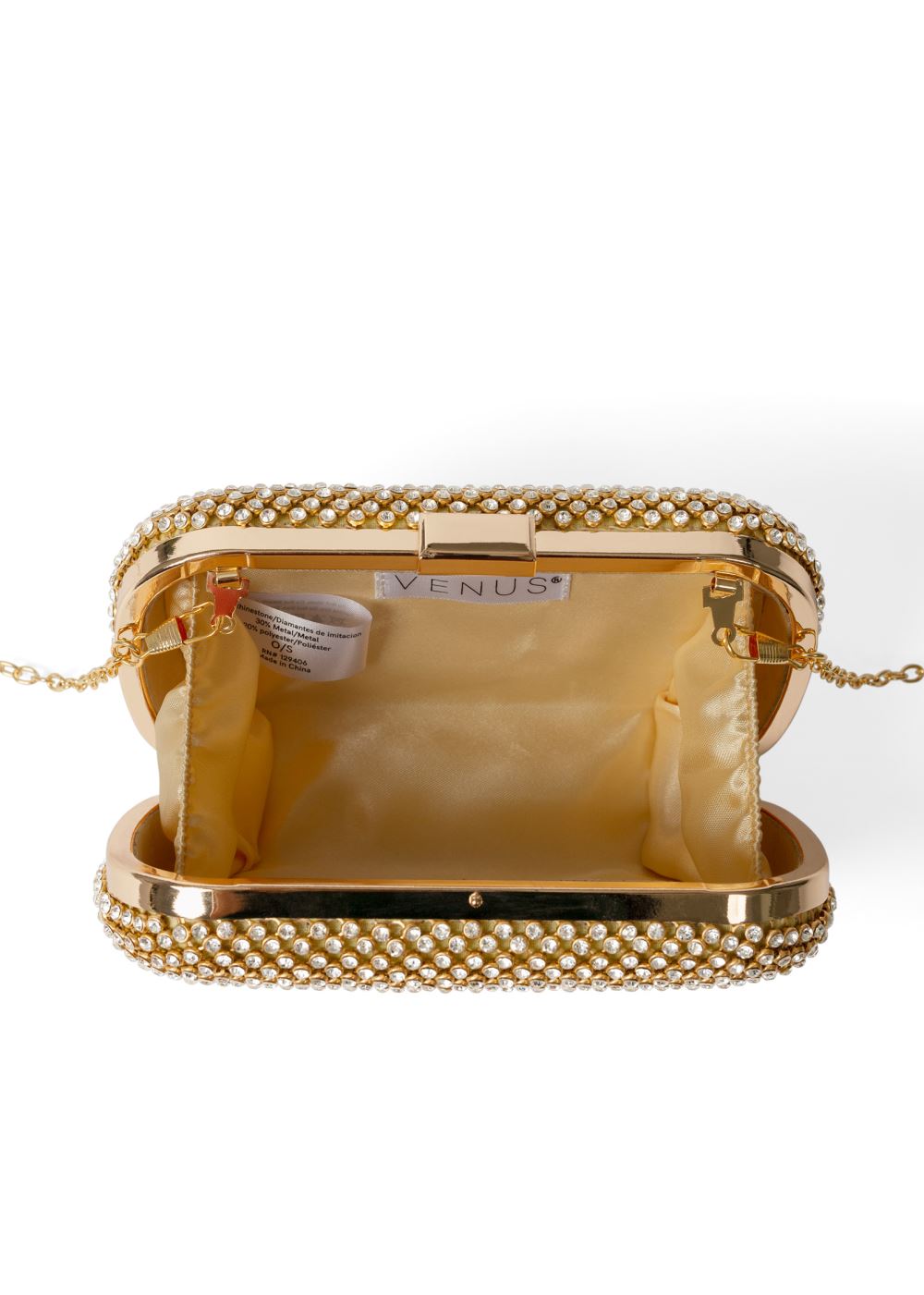 • Venus Jeweled Embellished Clutch in Gold Multi