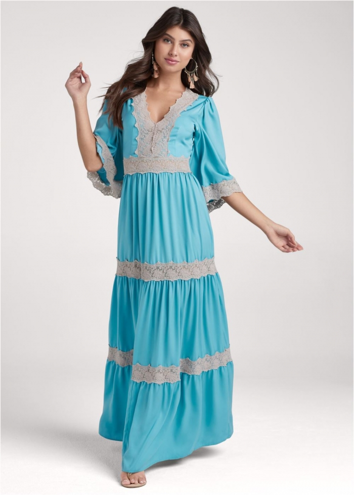 Venus Lace Detail Maxi Dress - Aqua Multi