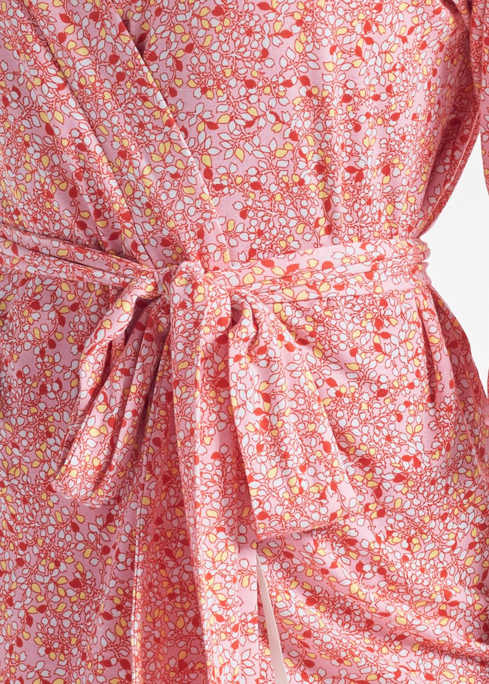 Worn over jammies for a morning in or meant to keep you covered while you're getting ready, this mini robe is a must-have laid-back piece. The completely adjustable tie belt secures the waist while feminine ruffle sleeves keep it loose and flirty. Family friendly coverage or a sexy topper