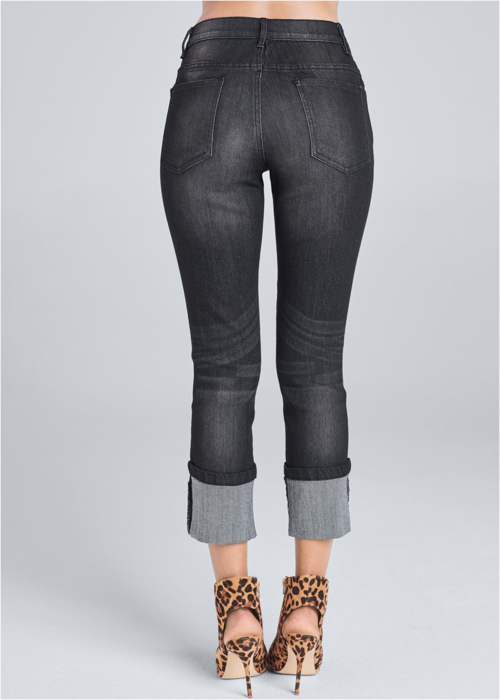 • Venus Plus Size Cropped Cuff Jeans in Black