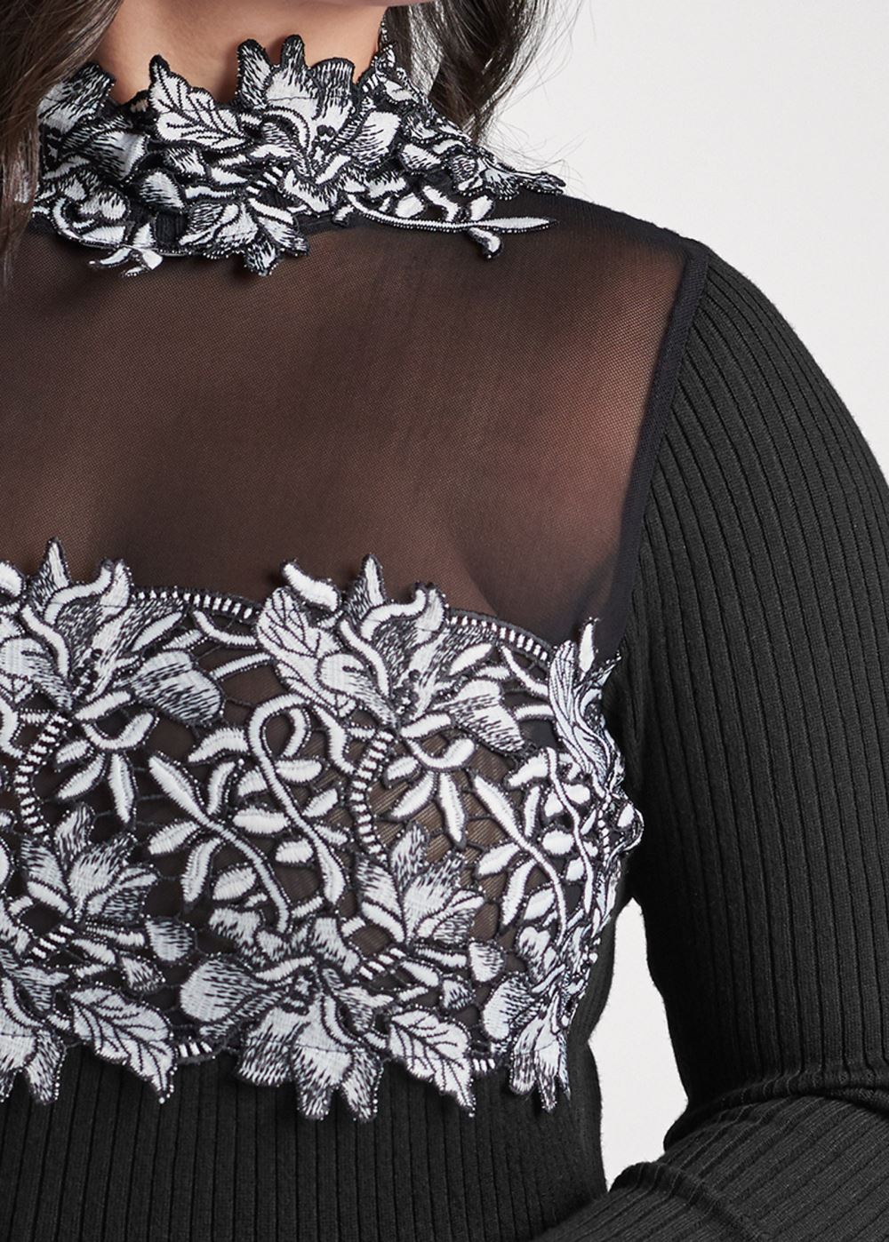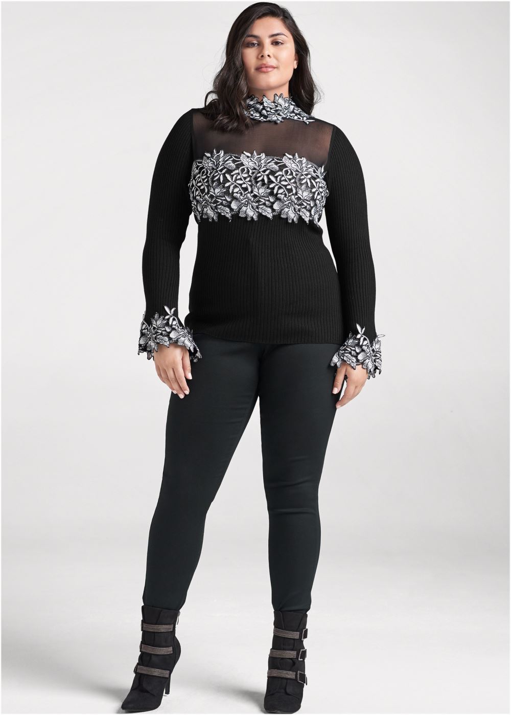 • Venus Plus Size Floral Applique Sweater in Black & White
