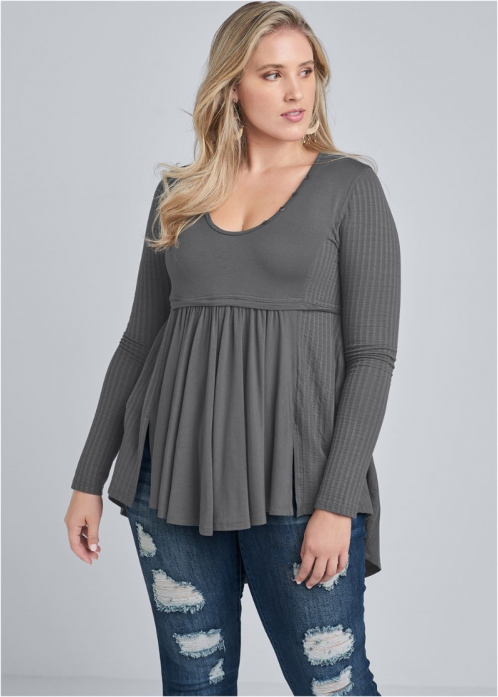 • Venus Plus Size High-Low Ribbed Casual Top