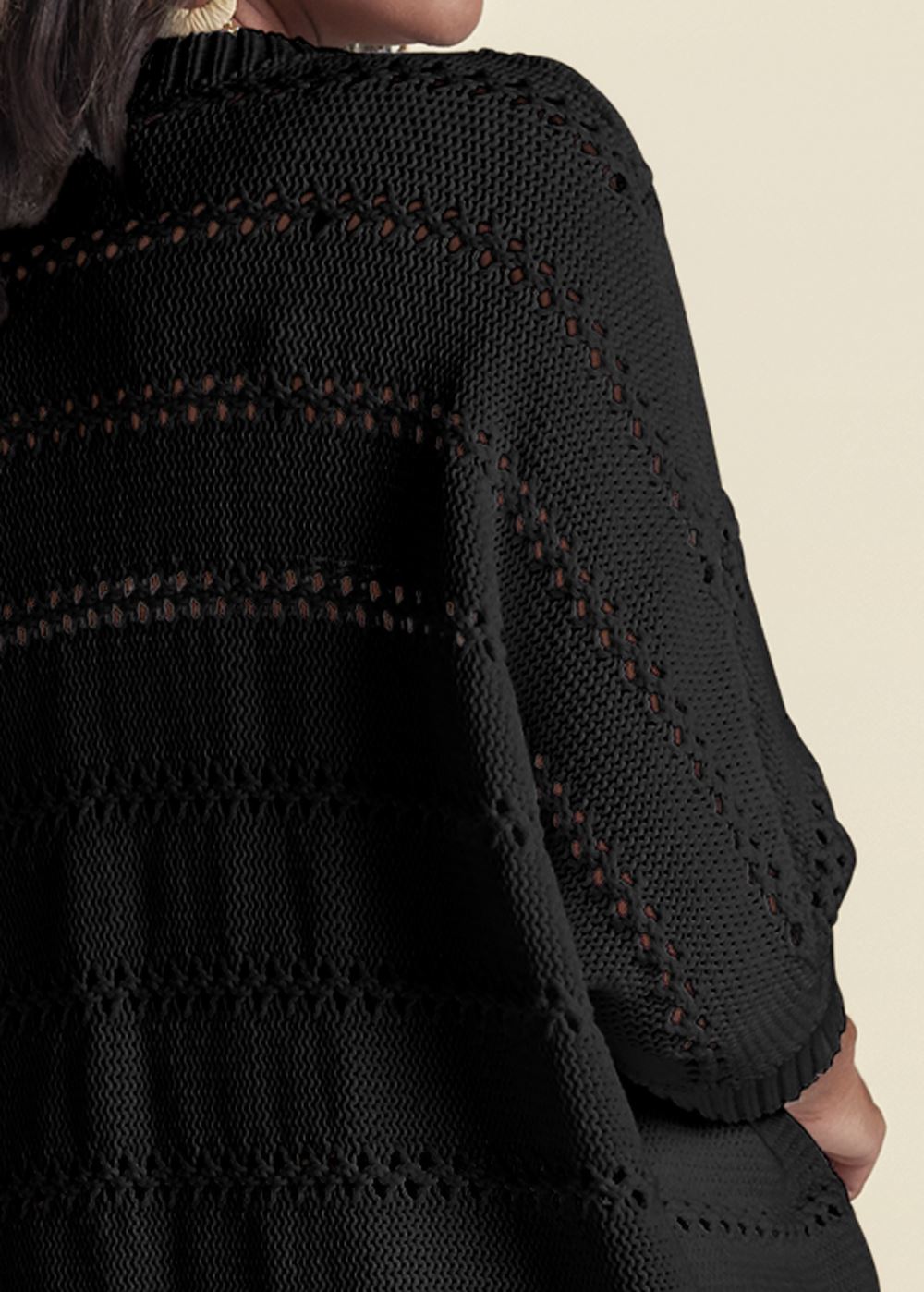 • Venus Plus Size Pointelle Stitch Cocoon Cardigan in Black