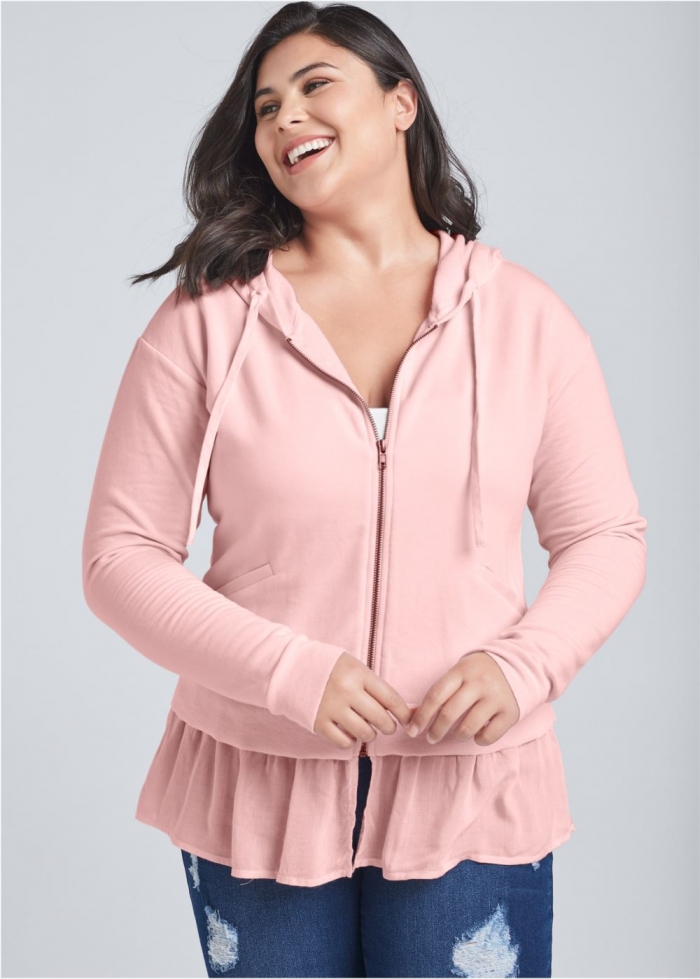 • Venus Plus Size Ruffle Hem Lounge Jacket in Light Pink