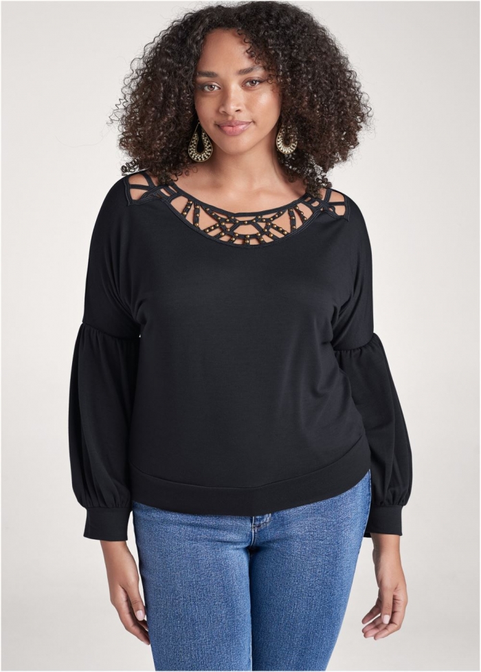 Venus Plus Size Embellished Neckline Top