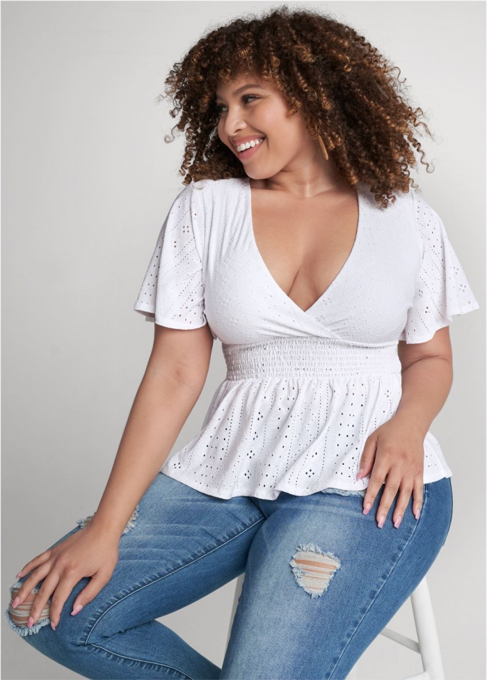 Venus Plus Size Stretch Eyelet Peplum Top