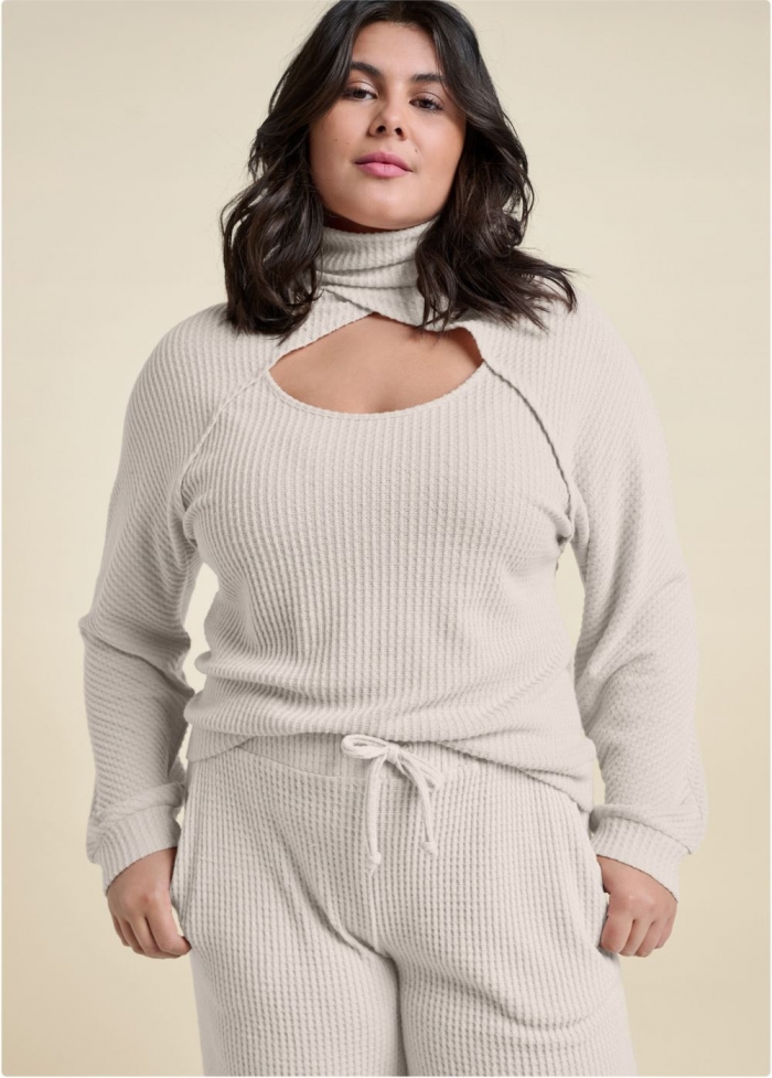 • Venus Plus Size Wrap Turtleneck Keyhole Top