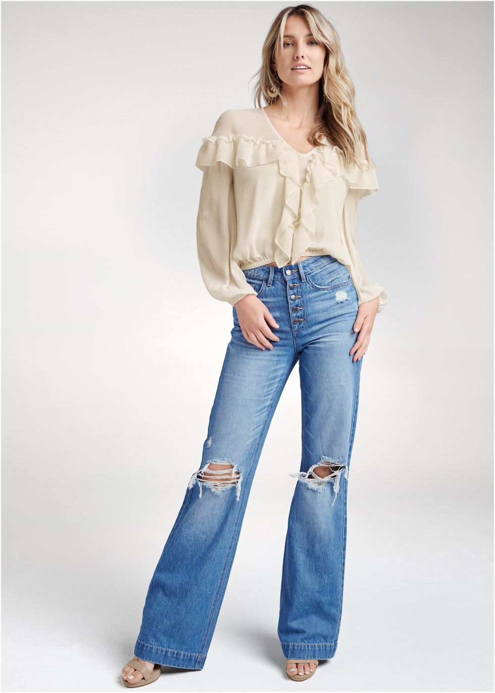 • Venus Ruffle Detail Blouse in Beige
