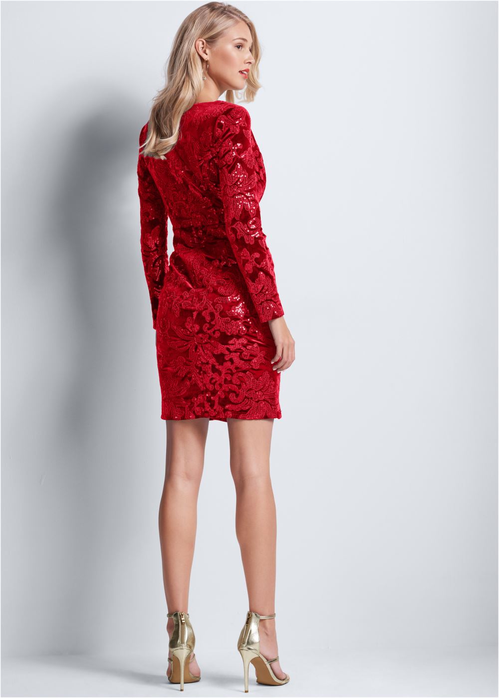 • Venus Sequin Velvet Detail Dress - Red
