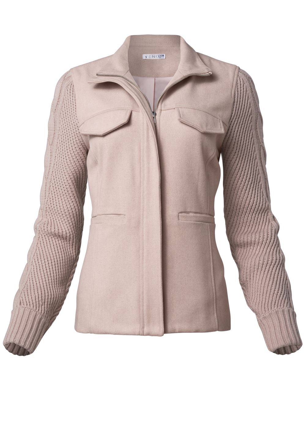 • Venus Sweater-Sleeve Zip Jacket in Taupe