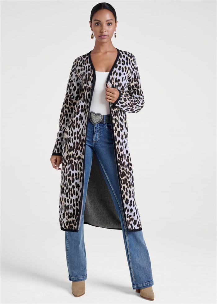 • Venus VENUS | Snow Leopard Print Duster in White Multi